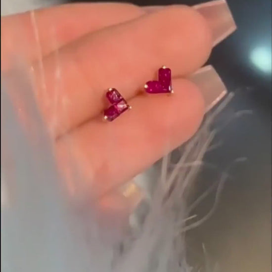 Red Cube Stack Stud Earrings